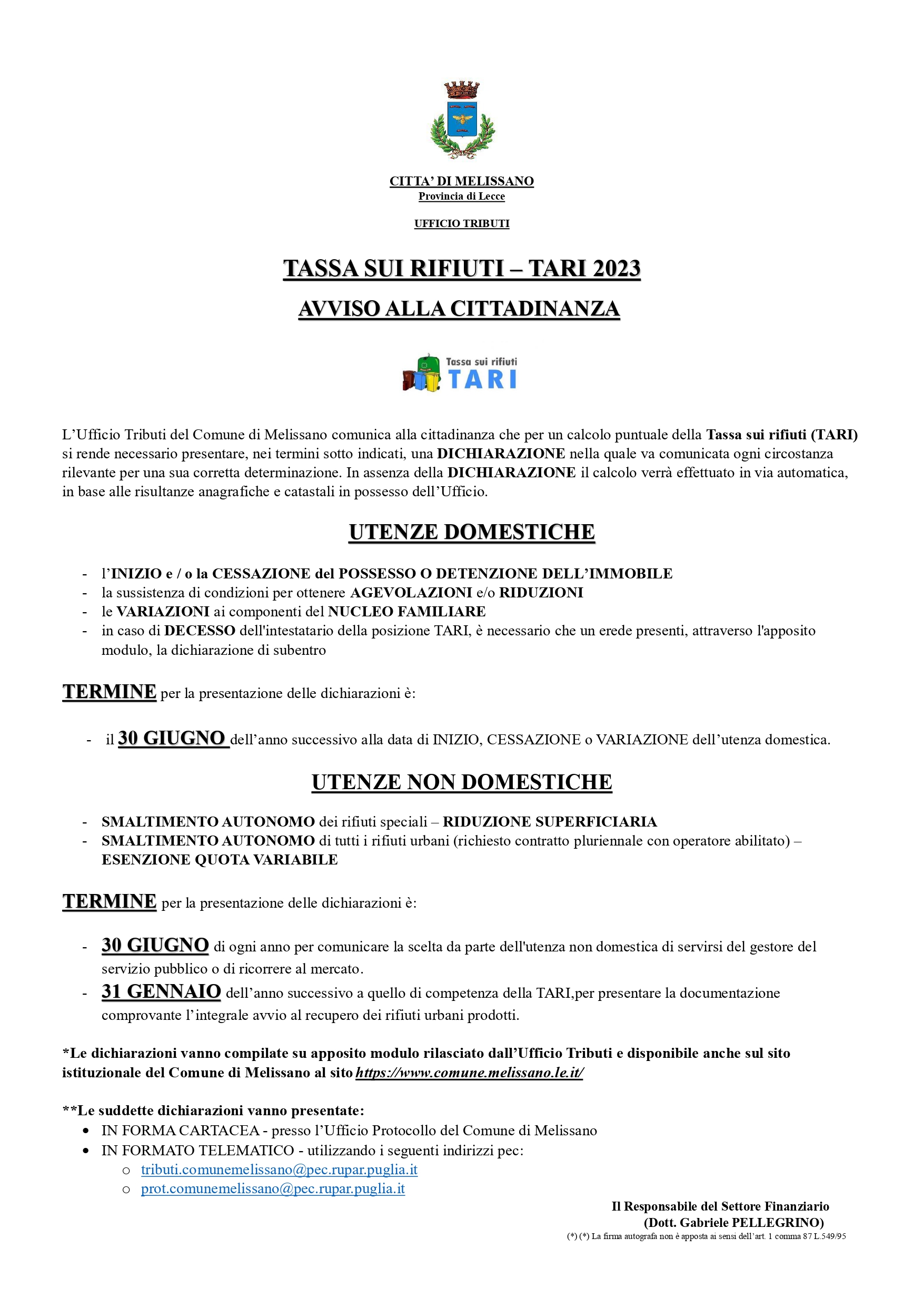Documenti allegati: DICHIARAZIONE TARI - Comune di Melissano 1